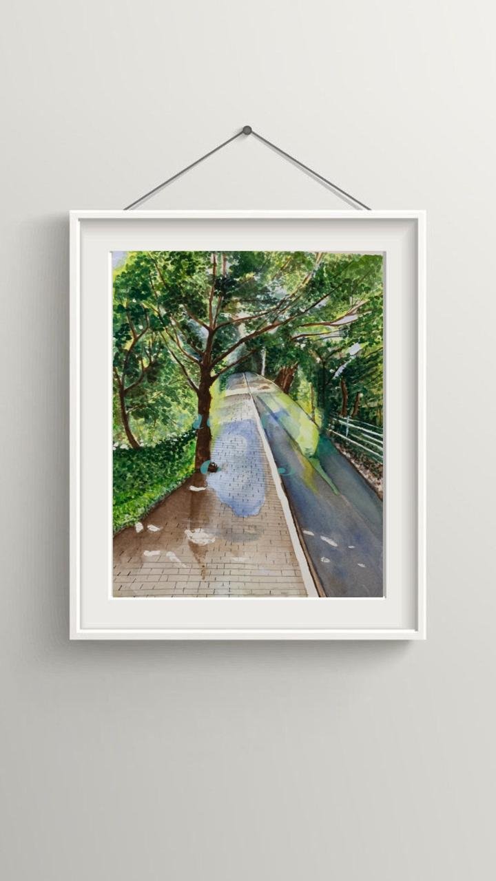 This painting is inspired by a reference photograph of a beautiful street in Germany, sent to me by my son when he went there for his studies. It holds many precious memories and emotions for me. Today, this artwork is adding charm and elegance to the home of its buyer.